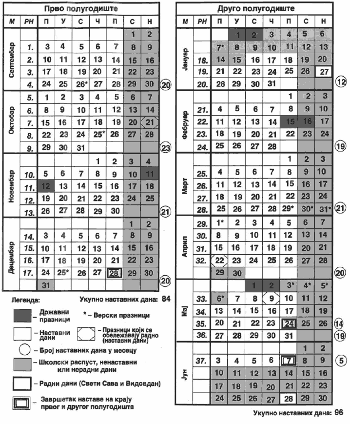 Календар рада основне школе